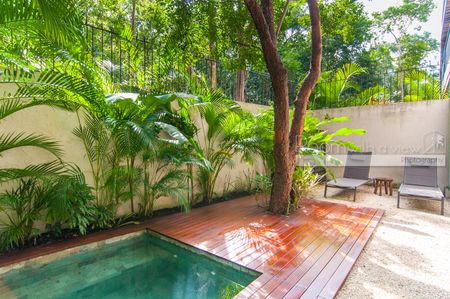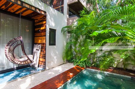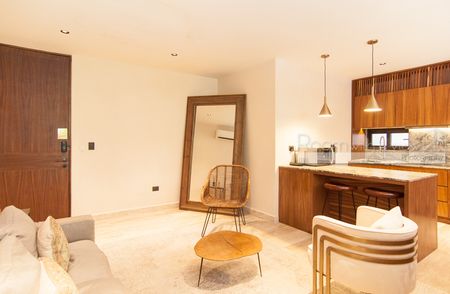 Este estudio ofrece la combinación perfecta de lujo, ubicación y estilo de vida. Cuenta con un diseño de planta abierta con materiales naturales, acabados de alta gama y grandes ventanales que permiten la entrada de abundante luz natural. El departamento se abre hacia una terraza completamente privada con una alberca tipo plunge y un jardín. Es ideal tanto para una persona como para un inversionista astuto que busca un refugio en el Caribe para vacacionar o una propiedad rentable para rentas en Tulum.