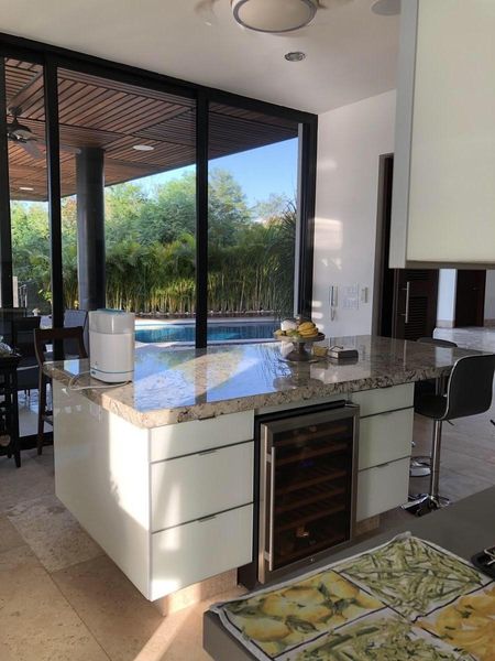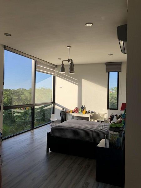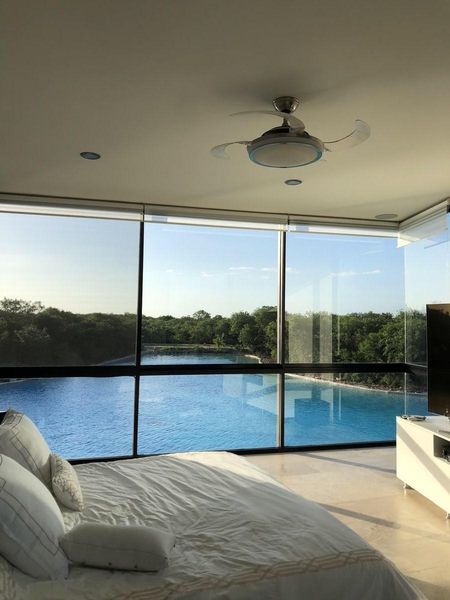 Espectacular residencia a orillas de un lago azul dentro de una de las privadas más exclusivas de Yucatán Country club. Cuatro recámaras con baño y vestidores. sala de cine totalmente equipada con butacas y sonido, estudio de televisión, cocina de lujo, , terraza con área de asador, piscina, baños de piscina para hombres y mujeres, estacionamiento techado para tres autos, bodega.