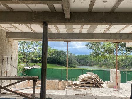 Yucatán contre club casa en campo de golf, Cuenta con tres recámaras con vestidor y baño en planta alta, cuarto de televisión, lavandería, cuarto de servicio, terraza, piscina, en planta baja cuenta con recámara de visitas con baño completo y vestidor, cocina equipada, 3 lugares de estacionamiento.