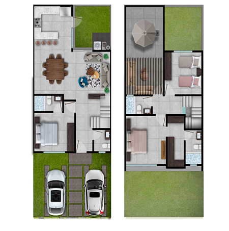 - 3 recamaras (1 en planta baja y 2 en planta alta)