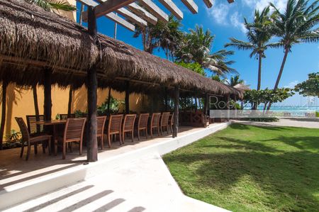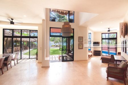 La villa cuenta con áreas de estar bellamente diseñadas, cocina con todos los servicios y un elegante comedor interior, perfecto para organizar reuniones familiares o cenas íntimas. Salga para encontrar una playa privada con arena blanca, una piscina reluciente y una impresionante palapa con comedor al aire libre, sala de estar, bar, hamaca y áreas de descanso. Ya sea que esté disfrutando de un café por la mañana o de cócteles al atardecer, los amplios espacios al aire libre brindan un entorno idílico para cualquier ocasión.