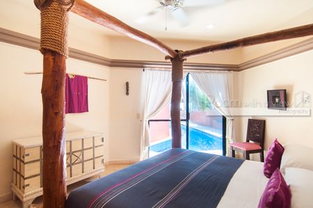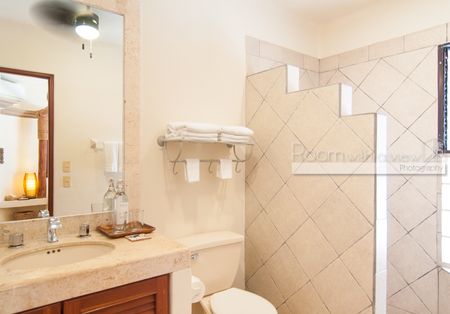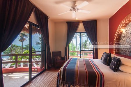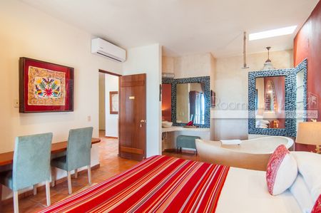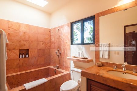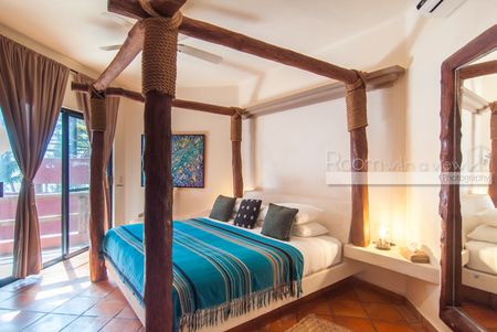 En el interior, la villa denota lujo y sofisticación con techos altos, puertas de madera noble hechas a mano y paredes de estuco con acabados exquisitos. Cada una de las ocho habitaciones ofrece impresionantes vistas al mar Caribe, baño privado en suite y cajas de seguridad en la habitación, lo que brinda comodidad y seguridad a todos los huéspedes. Una terraza en la azotea ofrece vistas panorámicas del océano, lo que crea un espacio idílico para relajarse y descansar.