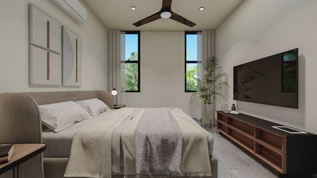 ● Equipamiento: parrilla eléctrica marca teka, calentador eléctrico, fijo de cristal templado, gabinetes inferiores en cocina, clósets semivestidos.