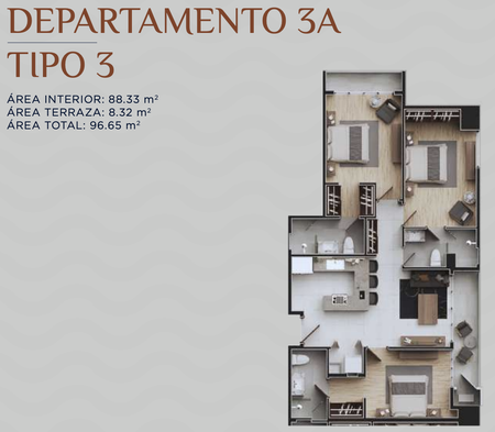 Área interior: 88.33 m2. Terraza: 8.32 m2