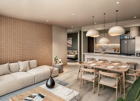 • 24 departamentos, con superficies de 77 m² a 105 m².