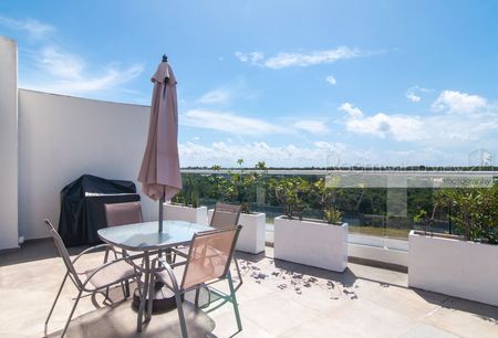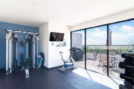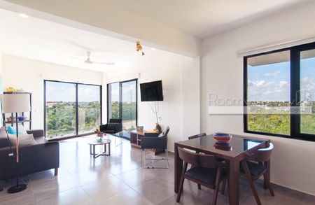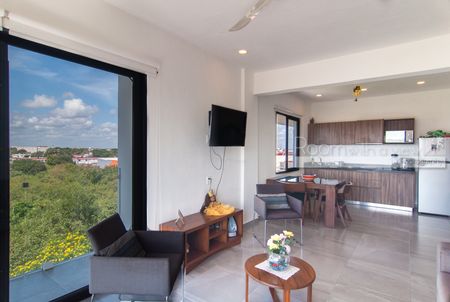 Este luminoso departamento de 2 habitaciones y 2 baños ofrece una ubicación inmejorable en el corazón de Playa del Carmen, cerca de la entrada a Playacar y a tan solo unos pasos de la playa y la famosa 5ta Avenida. Su diseño de planta abierta incluye una cocina totalmente equipada y una sala-comedor bañada de luz natural, que se extiende hacia un balcón privado, ideal para disfrutar de vistas a la ciudad y la selva circundante.
