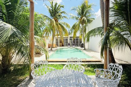 Terraza techada que da a la alberca, jacuzzi dividido en agua fría y caliente, horno de leña, asador, amplia parrilla.