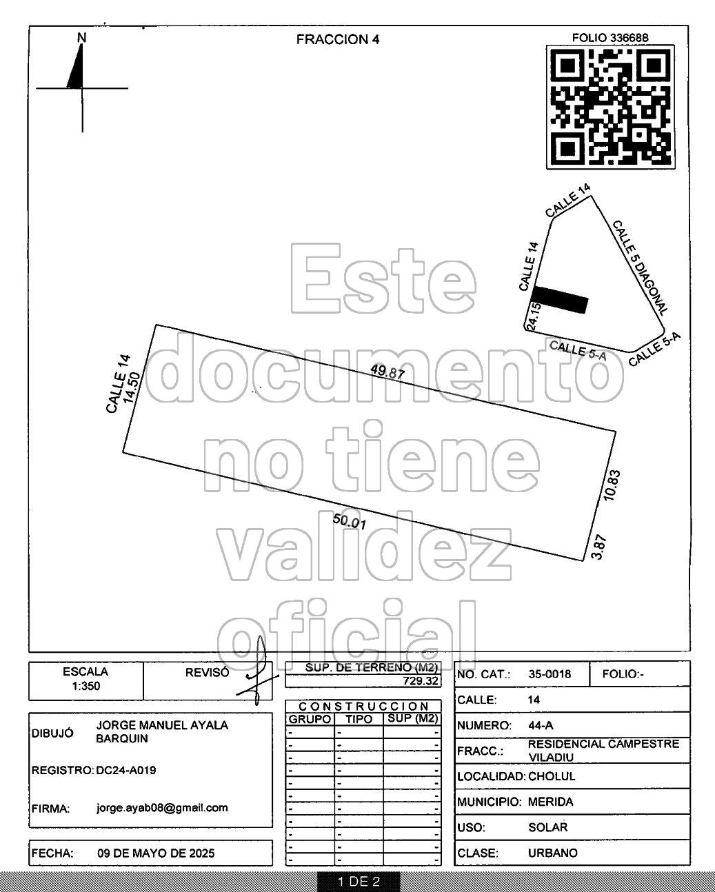 Terreno 44-A de 729.32 m2