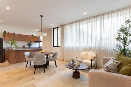 comerciales, departamentos ideales para vivir o invertir, y un moderno “business center”. La torre de vivienda es un espacio diseñado para satisfacer las necesidades de la vida diaria del residente. El lugar ideal para comenzar tu historia. Obtén las ventajas de habitar nuevos espacios.