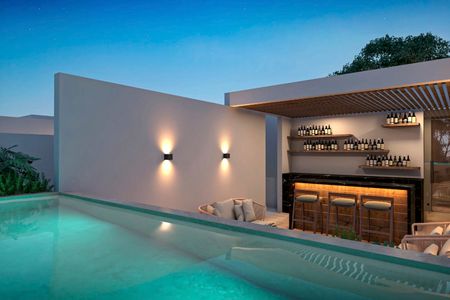 Actualmente se conceptúa en una planta con áreas de cocina, comedores al aire libre, barra, asador, horno de piedra, área para juegos de petanca y amplio estacionamiento en una superficie plana.